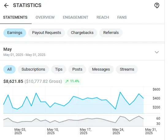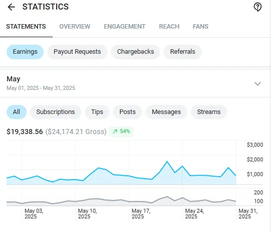 Starting fresh in April 2025, this creator began with just 1,600 fans and no established sales history. Within weeks of applying our chatting framework, upsell strategies, and structured coverage, the account scaled to $18,453 in monthly sales.