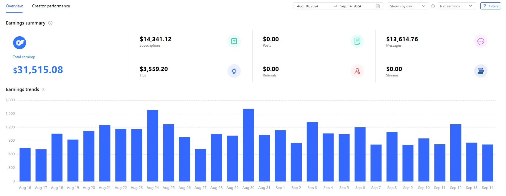 Over a 90-day period, one of our dedicated chatters generated more than $30,000 in revenue. By maintaining daily earnings of $400–$2,000, the chatter consistently engaged fans with strategic upsells, pay-per-view content, and tip requests.